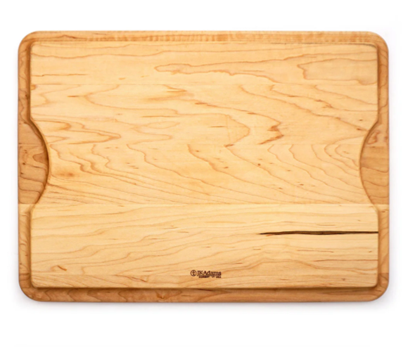 The Maple BBQ Carving Board, by J.K. Adams, is a best seller and is finished with mineral oil and beeswax. This board is made for going out to the BBQ or bringing your roast to the family table. The undercut handles make carrying easy. The flat surface is perfect for carving your favorite fall-off-the-bone ribs and grilled steaks. A wide groove collects the juices while you carve, keeping your counters and table nice and tidy. The Maple BBQ Carving Board is available in two sizes. Measures: 16"x 12" x 1". Made in the USA. Handwash only with warm, soapy water after each use and dry thoroughly with a towel. Never soak or submerge in water, run in a dishwasher, or use in a microwave. Placing hot pots or pans on your board can result in a lasting burn mark.