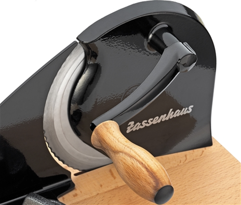 Blending traditional charm with contemporary German craftsmanship, this iconic bread-cutting machine streamlines the process of creating delicious toast or sandwiches using your own homemade or store-bought bread and a manual hand crank. Perfect for sourdough, baguettes, crusty artisan breads, and bagels, as well as softer breads. The blade is fashioned from high-quality stainless steel, manufactured in Solingen, Germany, and boasts a unique serrated edge that can be adjusted to slice bread to any thickness up to 0.7 inches. The slicer is secured in place by four sturdy suction cups, ensuring stability during use.
