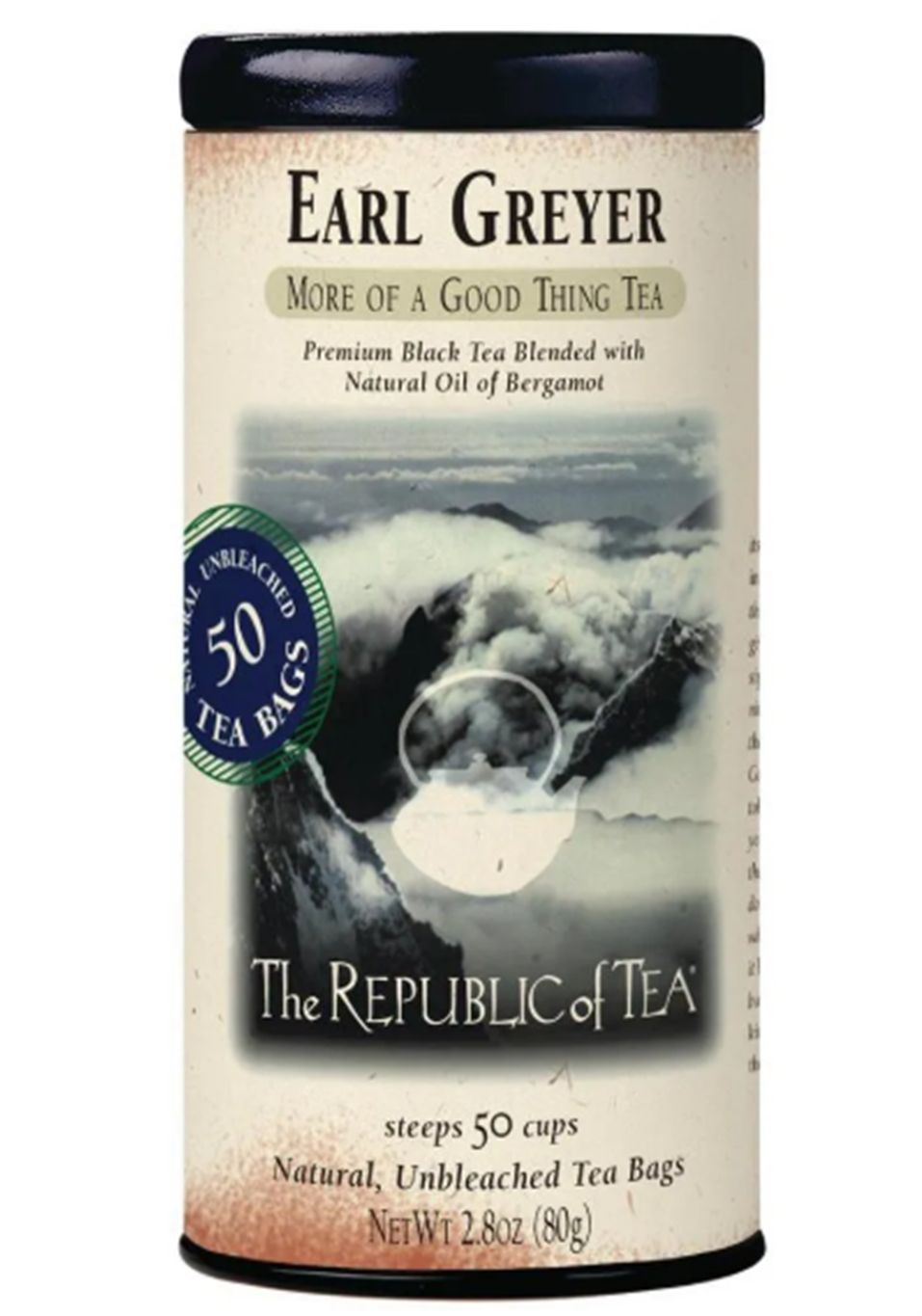 More of a Good Thing Tea - Our exceptional blend of this classic tea uses a superior, light liquoring leaf combined with top-grade, pure bergamot oil. Recognized as the best tasting Earl Grey available. 50 unbleached, all-natural tea bags packed in an airtight, recyclable tin. Made by Republic of Tea.