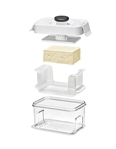 Whether you marinate, bake, air-fry, or sauté your tofu, the OXO Tofu Press will streamline the process of pressing excess moisture to create firm tofu that gets crispy when prepared. The Tofu Press features a rigid plate that will press your tofu evenly for consistent results and has two pressing strengths to customize tofu to your taste. Start at the first setting, and most water will be pressed out of your tofu after 15 minutes; perfect for setting and letting it do the work while you finish other parts of your meal prep. If you want to press out more water, move on to the second setting. The clear body allows you to check the progress, while the design keeps the tofu out of the extracted water. The pressing knob locks flush with the lid for flat, stackable storage. The Press is easy to disassemble for easy, thorough cleaning and is dishwasher safe. Measures 6.5 x 4.5 x 5 inches.