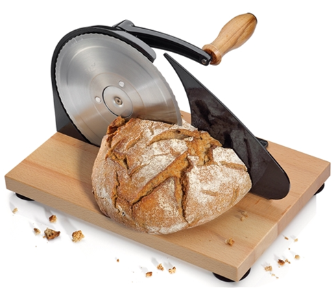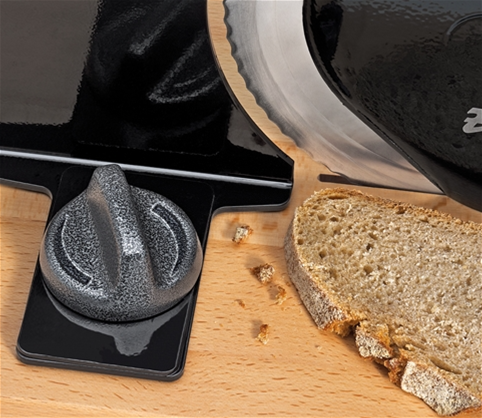 Blending traditional charm with contemporary German craftsmanship, this iconic bread-cutting machine streamlines the process of creating delicious toast or sandwiches using your own homemade or store-bought bread and a manual hand crank. Perfect for sourdough, baguettes, crusty artisan breads, and bagels, as well as softer breads. The blade is fashioned from high-quality stainless steel, manufactured in Solingen, Germany, and boasts a unique serrated edge that can be adjusted to slice bread to any thickness up to 0.7 inches. The slicer is secured in place by four sturdy suction cups, ensuring stability during use.